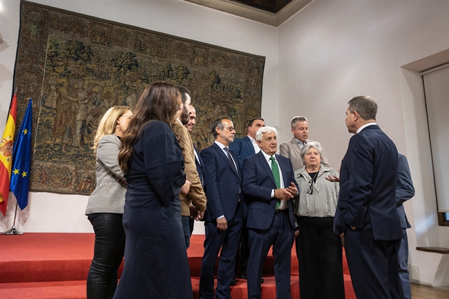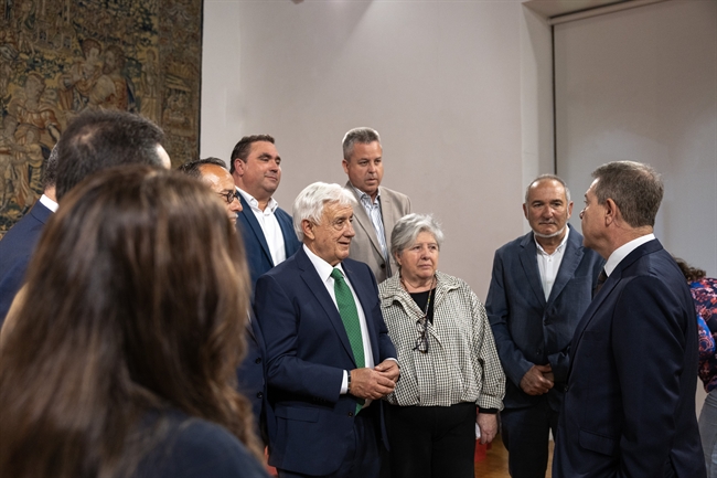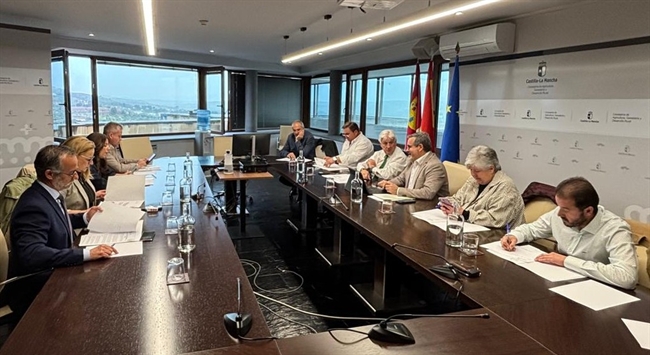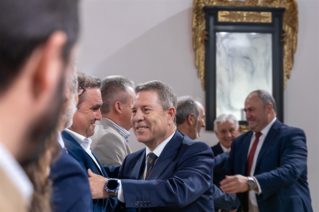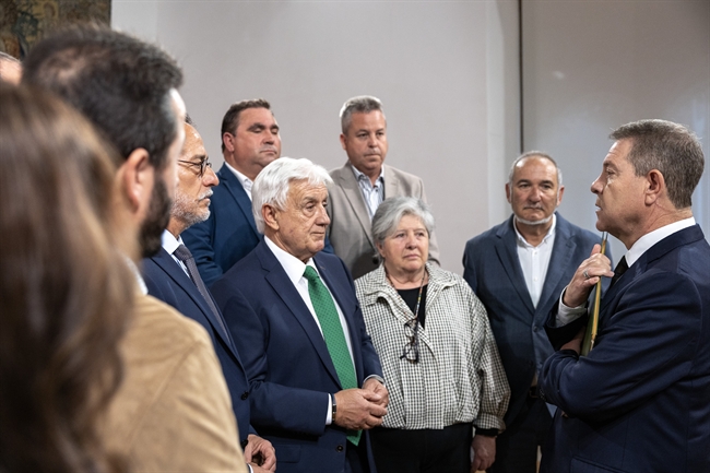 Representantes de la Red Castellano Manchega de Desarrollo Rural (RECAMDER), entre ellos el presidente de Alto Guadiana Mancha, Pedro Antonio Palomo Mata, han mantenido hoy una reunión en Toledo con el presidente de Castilla-La Mancha, Emiliano García-Page, y el consejero de Agricultura, Ganadería y Desarrollo Rural, Julián Martínez Lizán, para trasladarle la preocupación que existe en el medio rural ante la posible eliminación de los fondos para la financiación del programa Leader por parte de la Comisión Europea de cara a la programación 2028/2034.