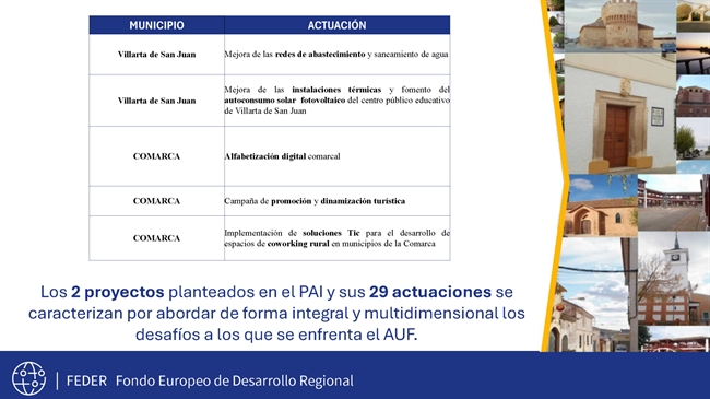El Grupo de Desarrollo Rural Alto Guadiana Mancha ha tenido un papel clave en el diseño y la puesta en marcha del Plan de Actuación Integrado (PAI) del Área Urbana Funcional Alto Guadiana-Mancha, un ambicioso proyecto de desarrollo sostenible que movilizará 7.150.660 euros en los 15 municipios que integran este territorio rural.